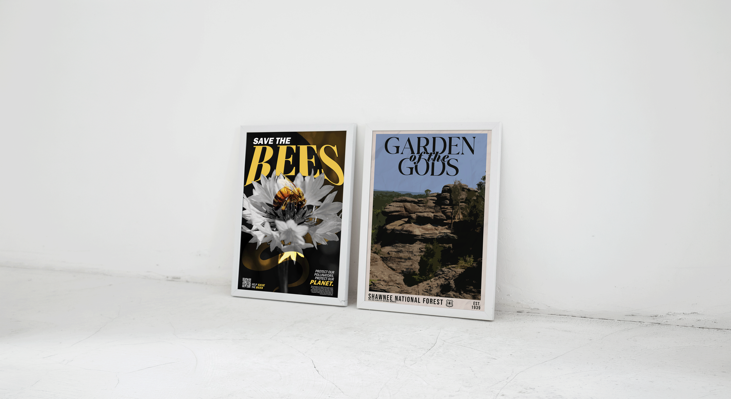 This poster was created for Garden of the Gods in Shawnee National Forest, drawing inspiration from the classic vintage National Park posters of the WPA era. It reflects the bold, simplified forms and limited color palettes characteristic of that style, while emphasizing the natural beauty and dramatic landscapes of the site.