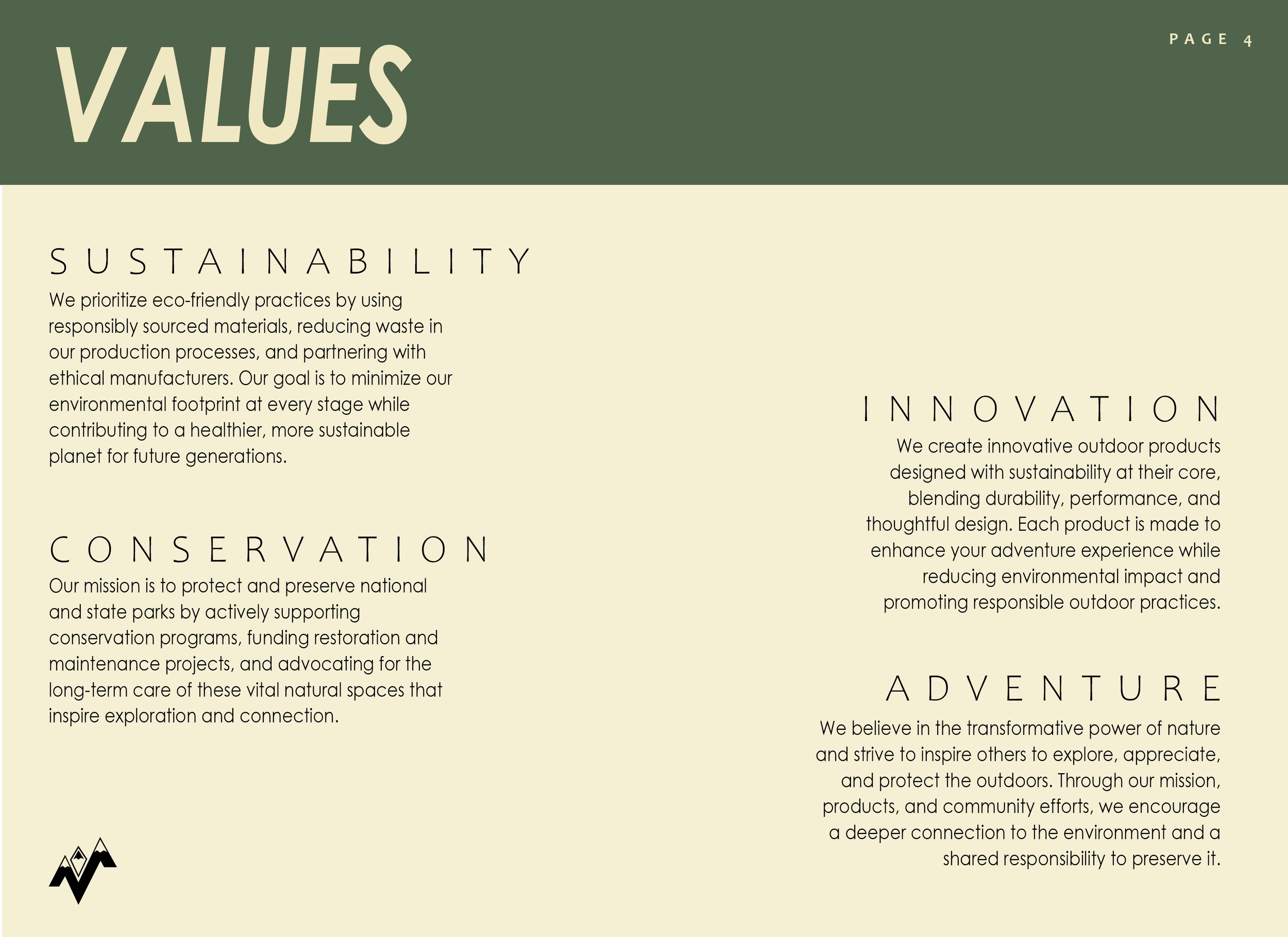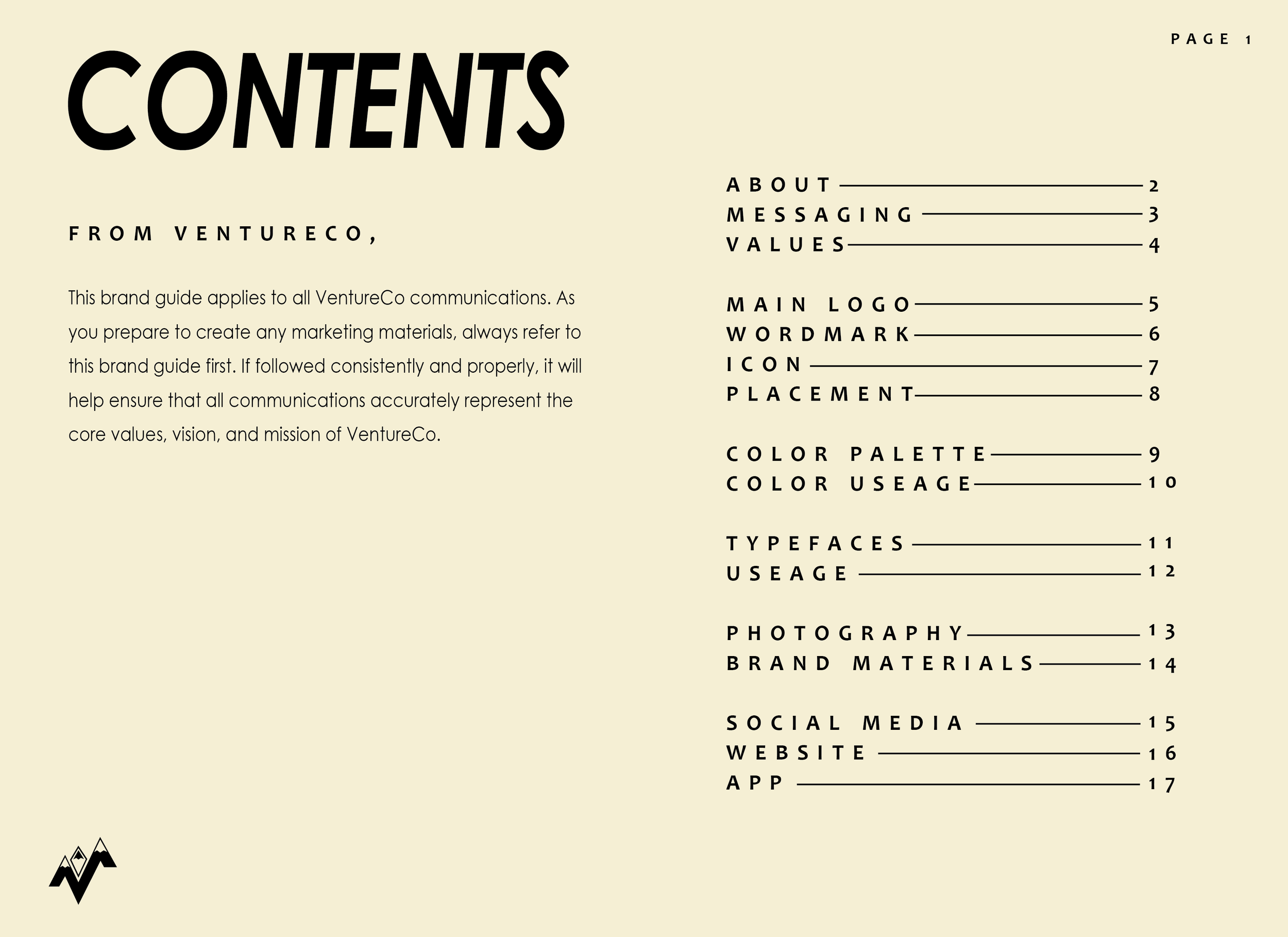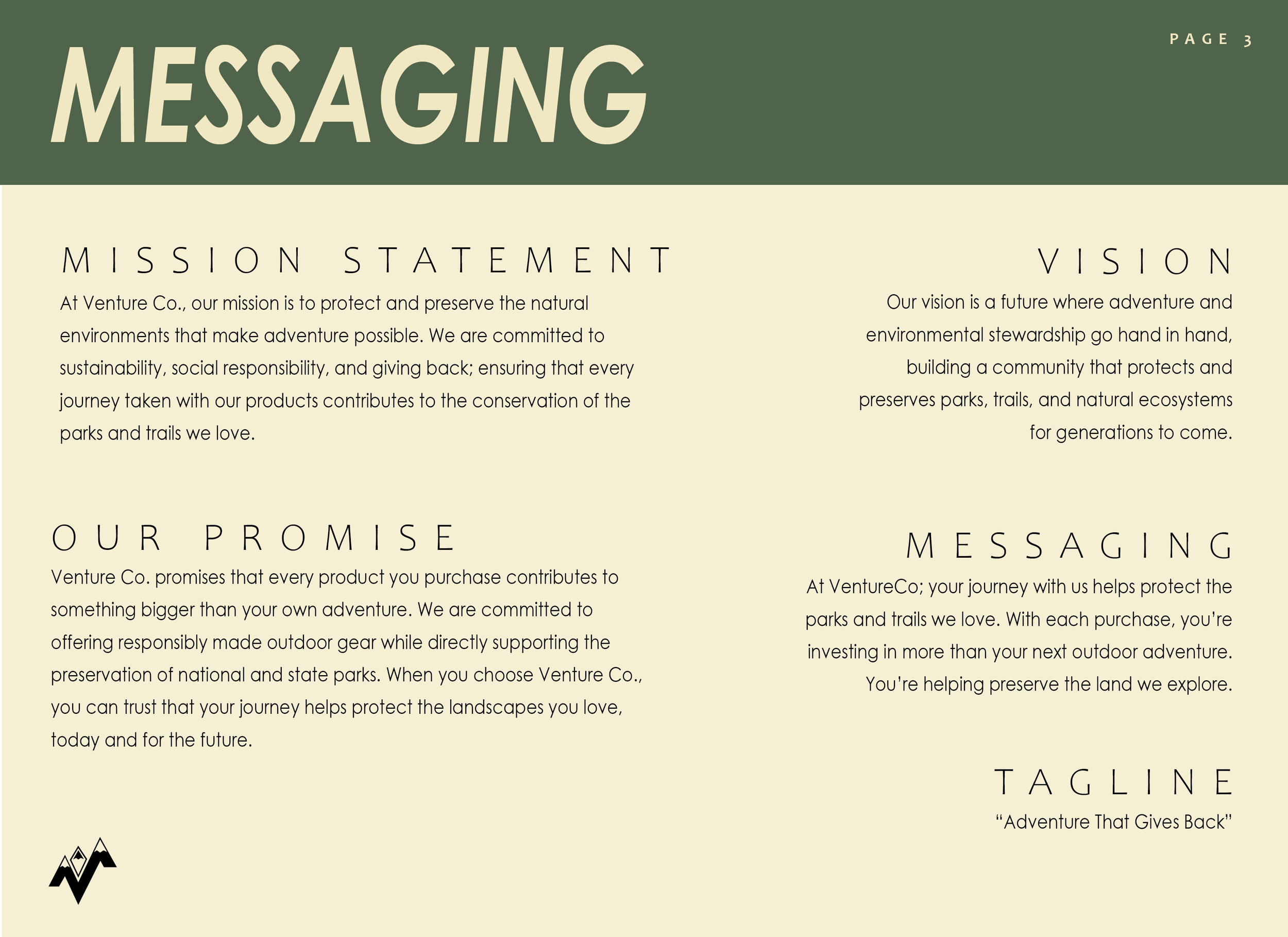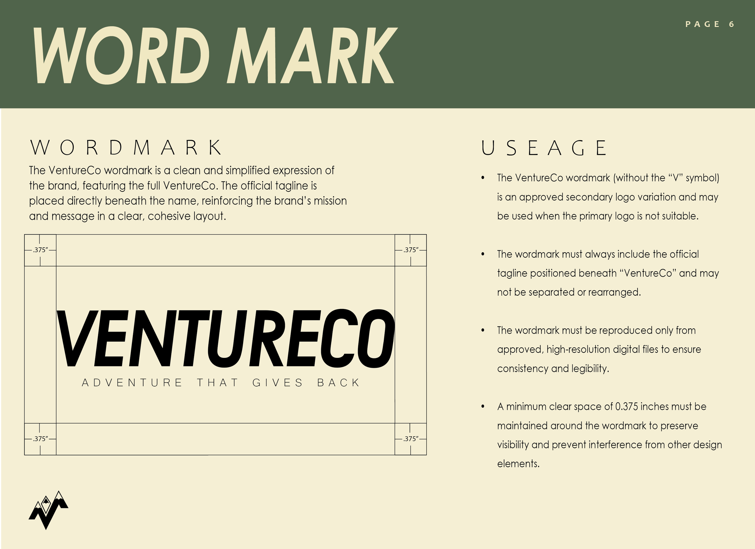 This project was developed as an opportunity to explore branding by creating a complete visual identity for a fictional company from the ground up, including its system, tone, and supporting details. VentureCo is a conceptual outdoor brand that offers gear, clothing, and accessories for hikers, campers, climbers, and nature enthusiasts who value the outdoors and environmental responsibility.