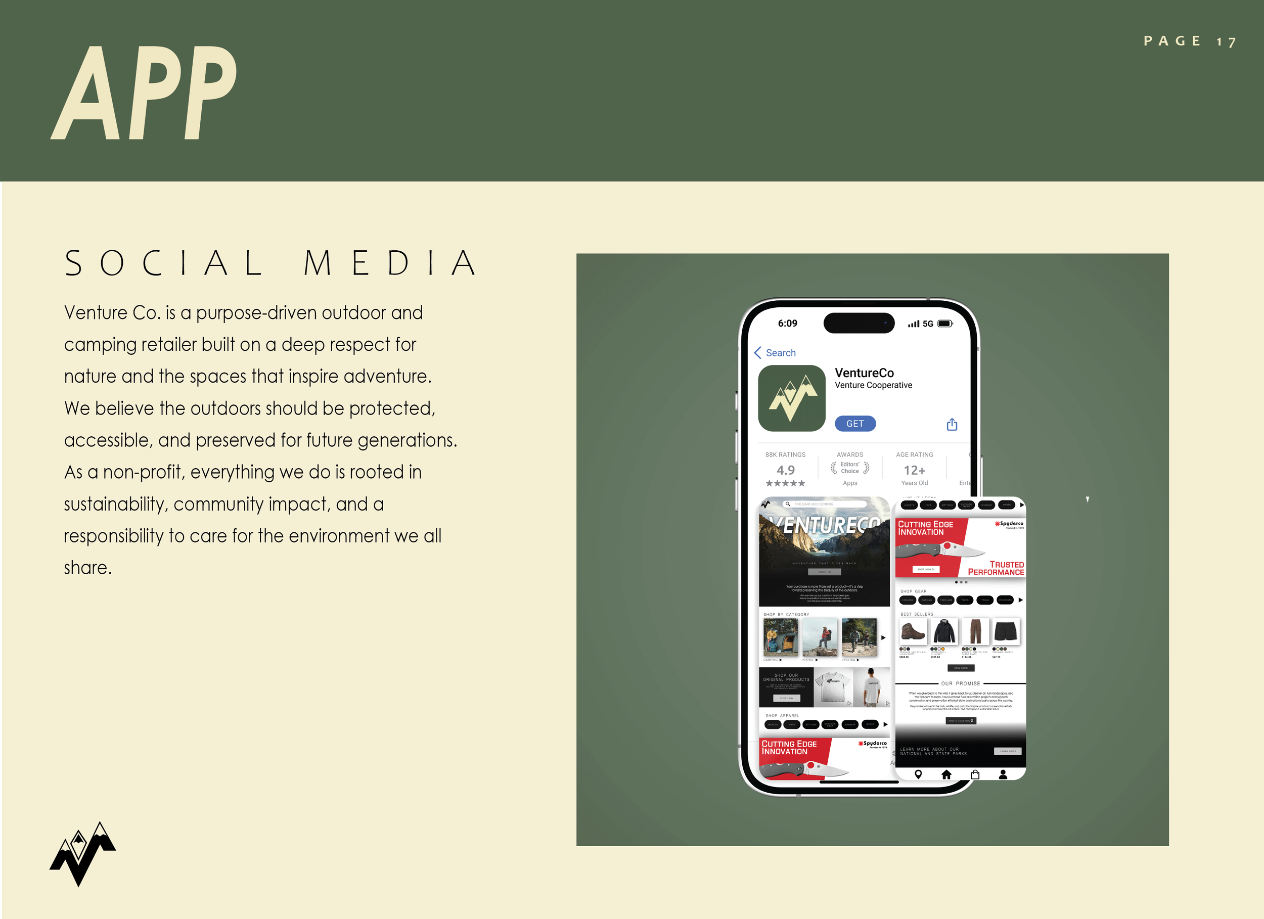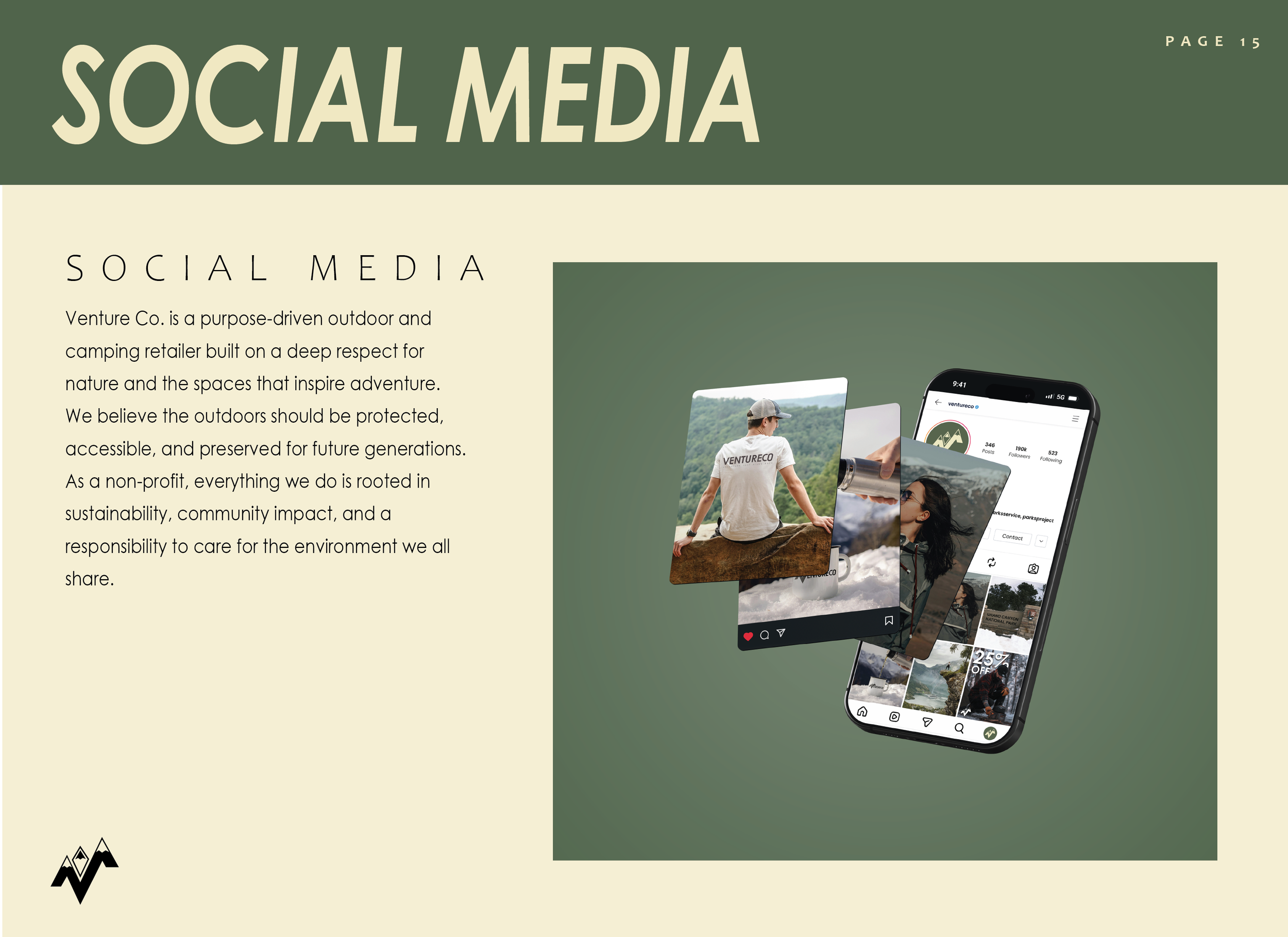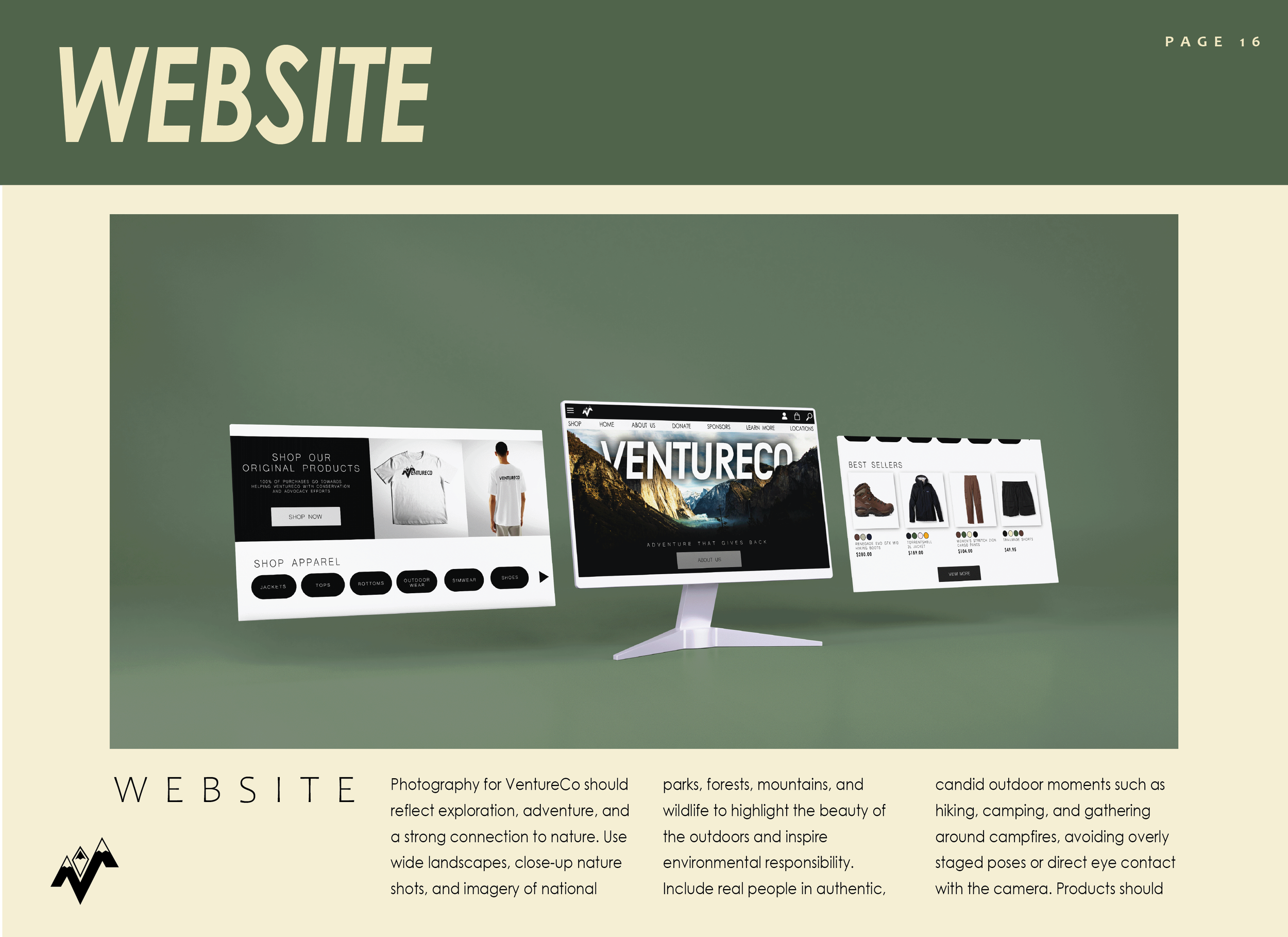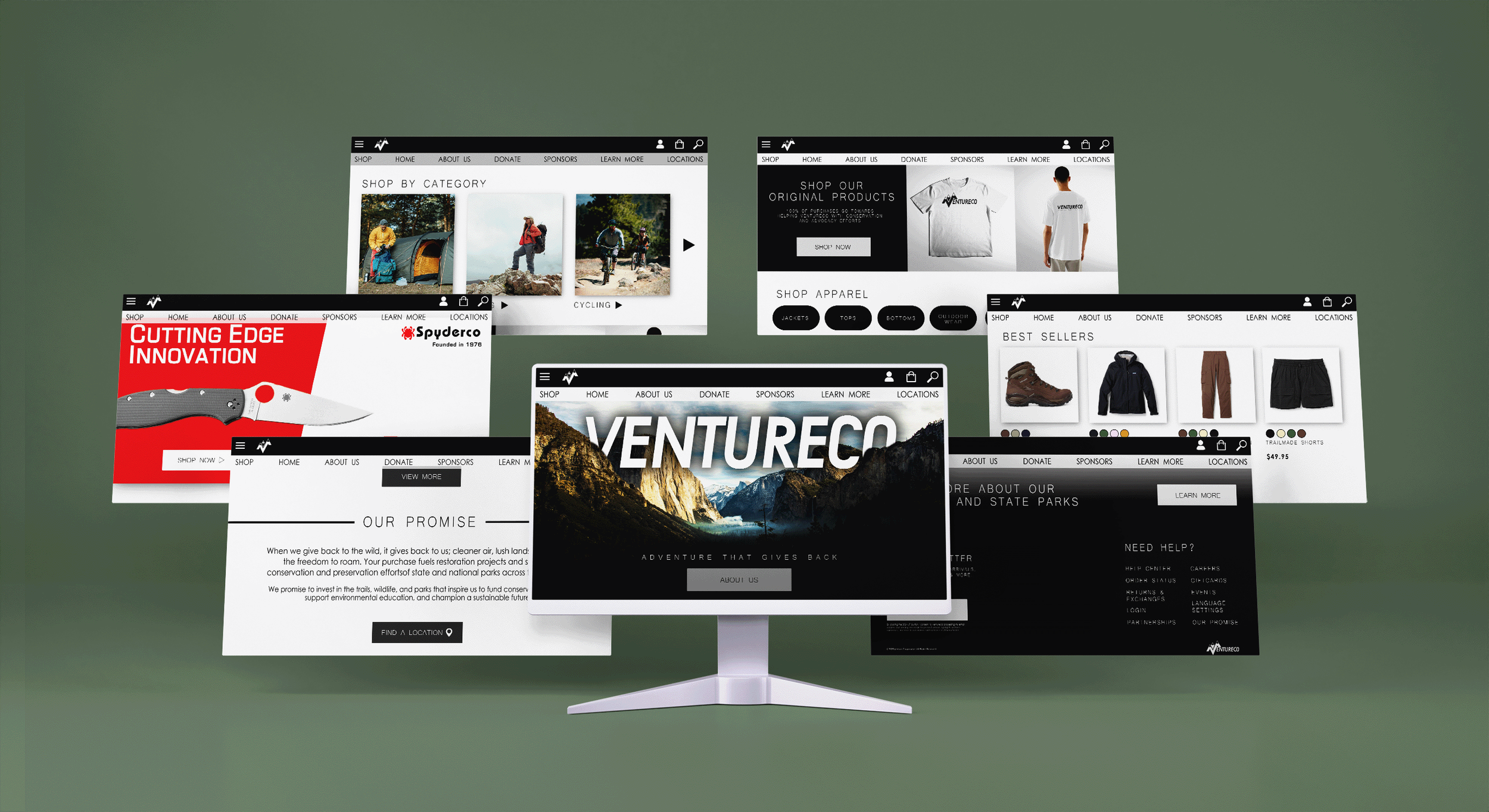 VentureCo’s branding spans multiple digital platforms to create a cohesive and accessible experience. The website features an online shop, educational content focused on sustainability and outdoor awareness, and easy navigation that allows users to explore both products and information.